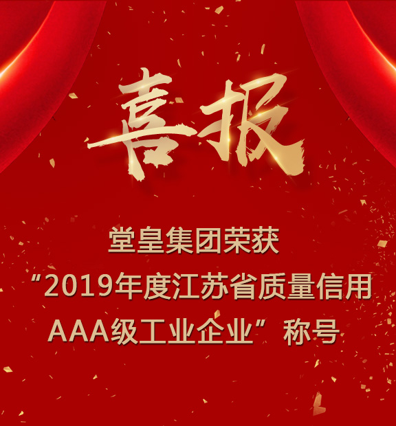 喜報!堂皇集團榮獲“2019年度江蘇省質量信用AAA級工業企業”稱號
